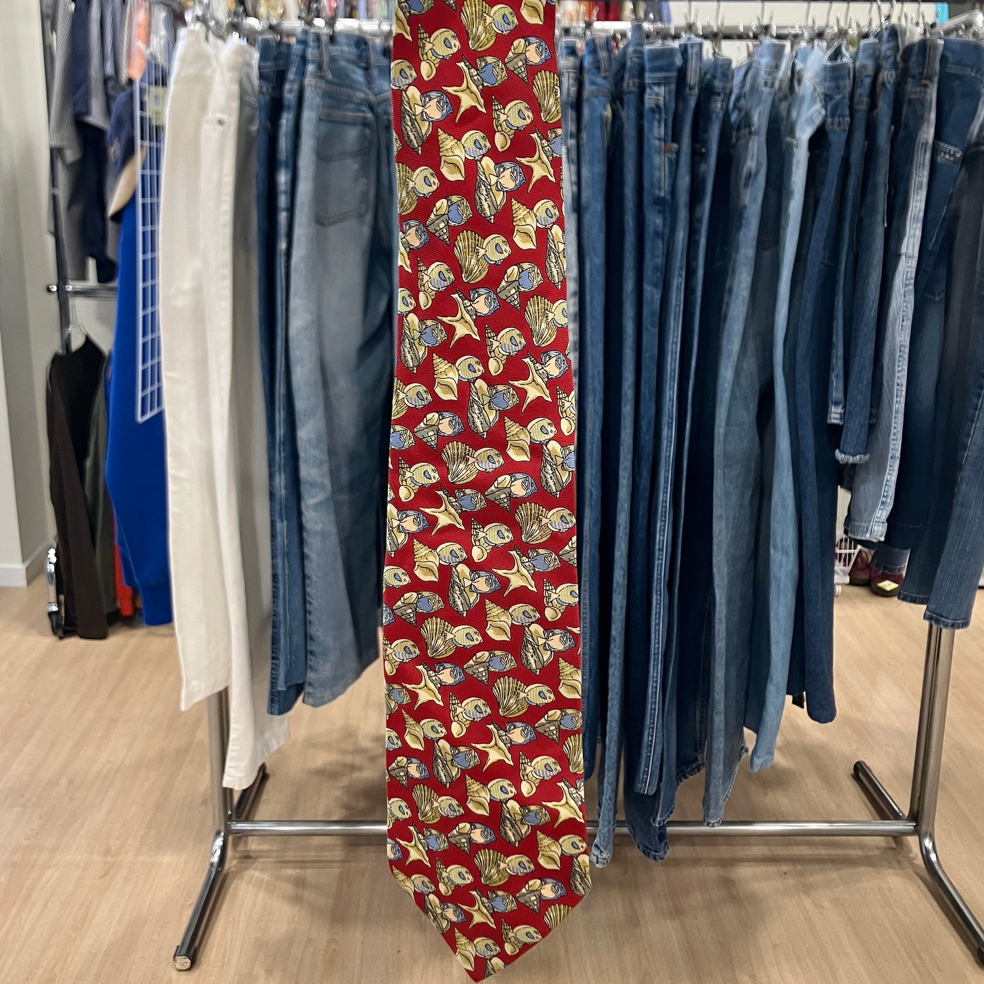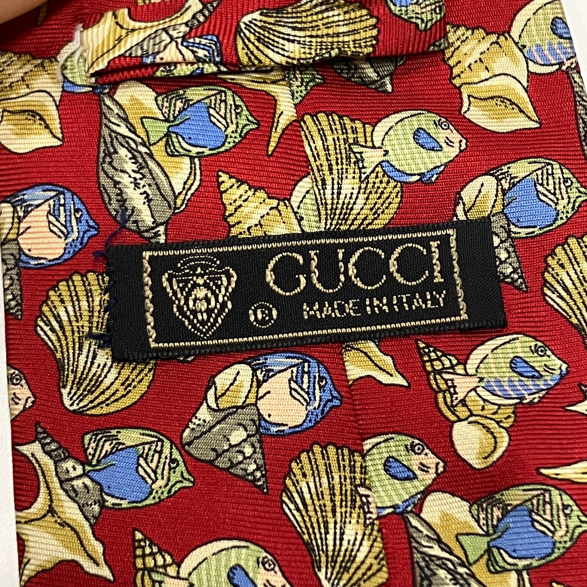gucci 90s red silk tie with sea shells