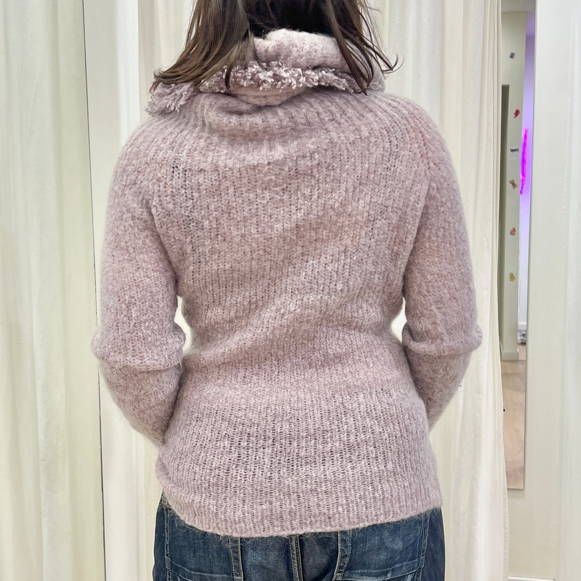 la fretta 00s lilac wool knit sweater with fringed roll neck