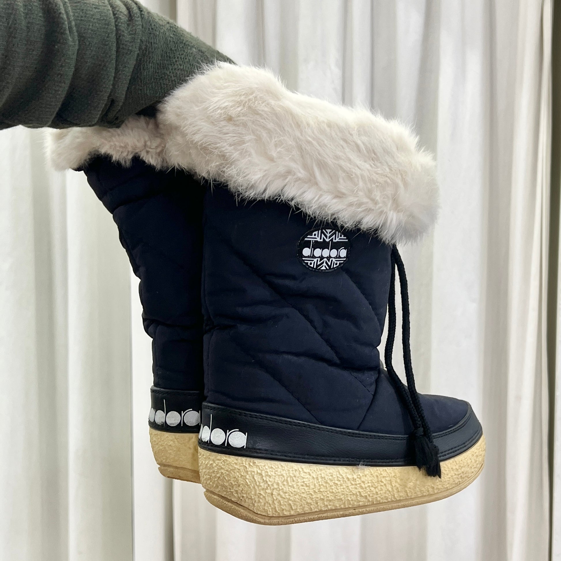diadora 00s navy blue apres-ski snow boots with white faux fur
