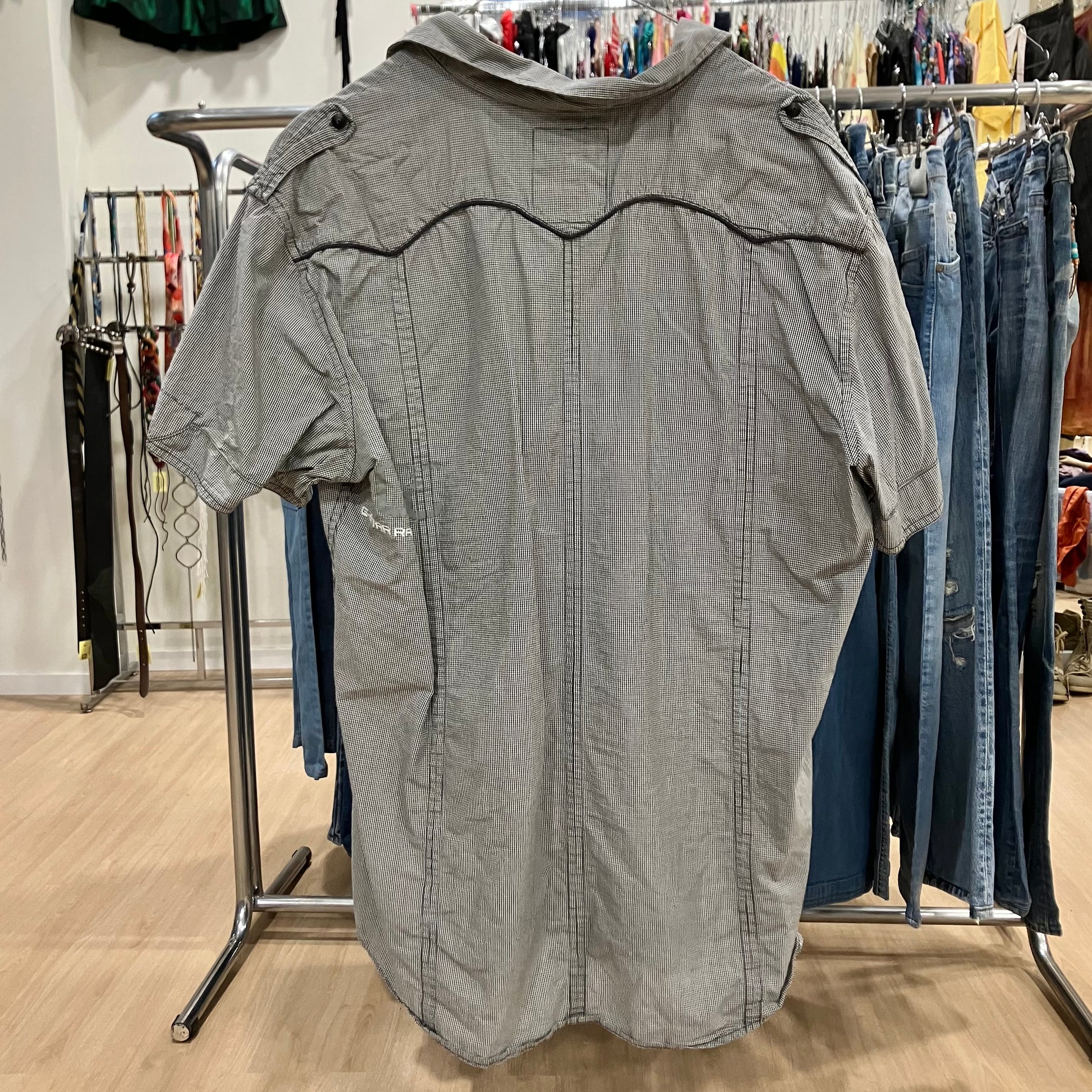 g star 00s black white micro gingham cargo short sleeve shirt