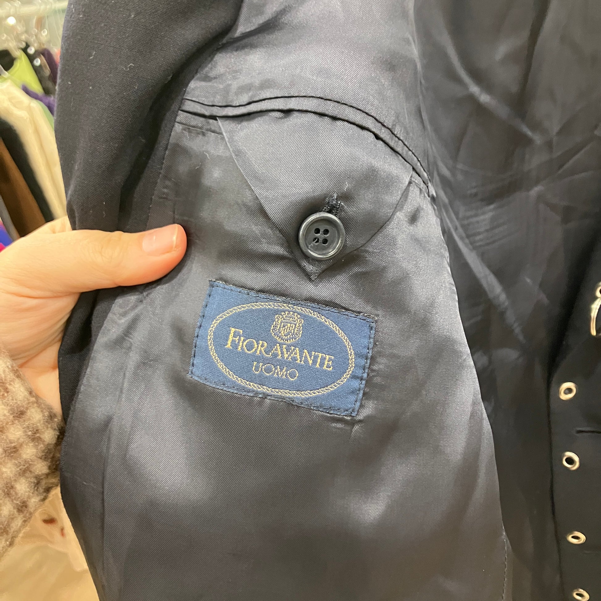 fioravante 90s navy blue wool tailored blazer reworked with silver grommets and rings