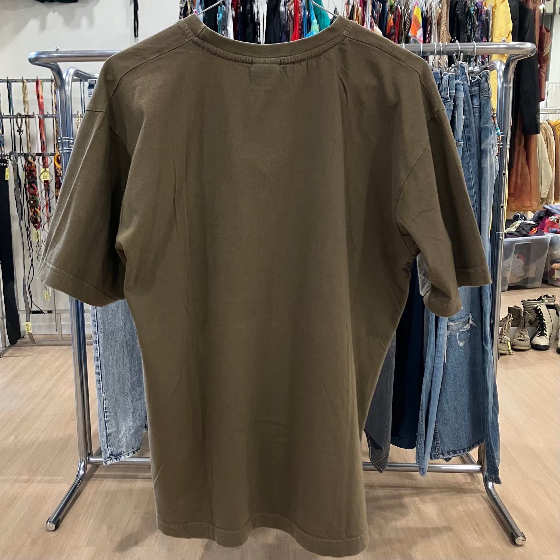 apple guru khaki tee with orange geko design