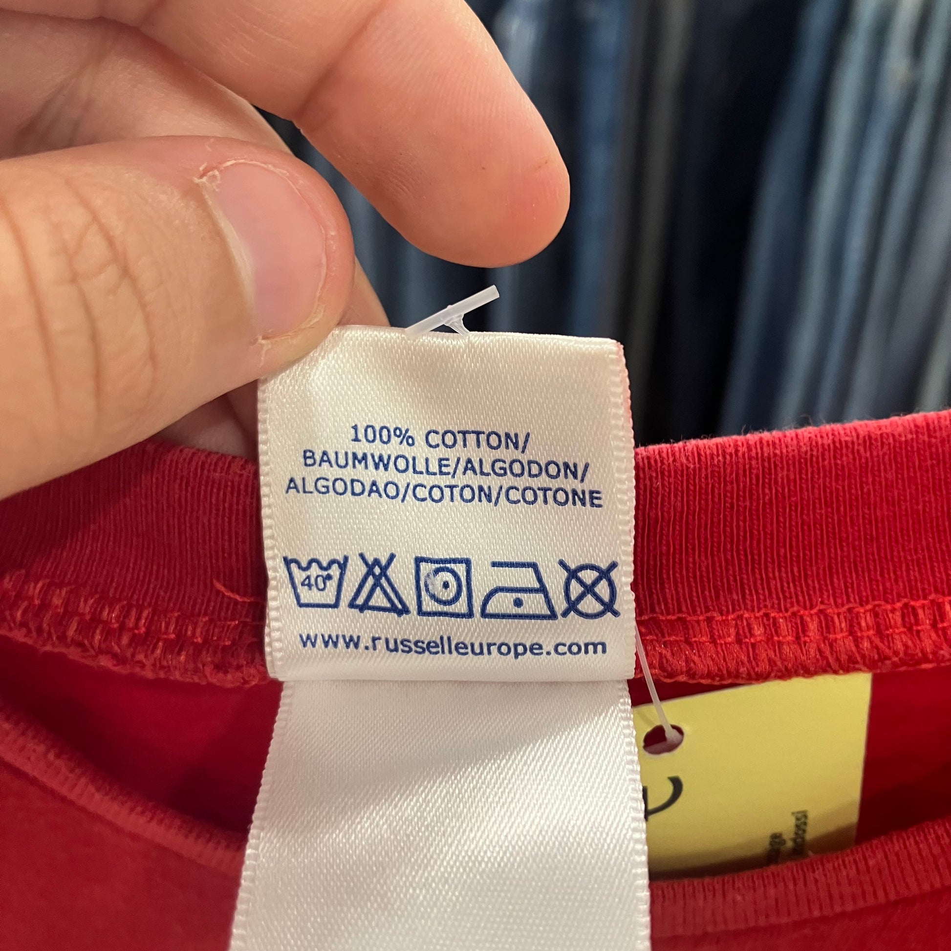 russell 00s red tshirt with paper boat design