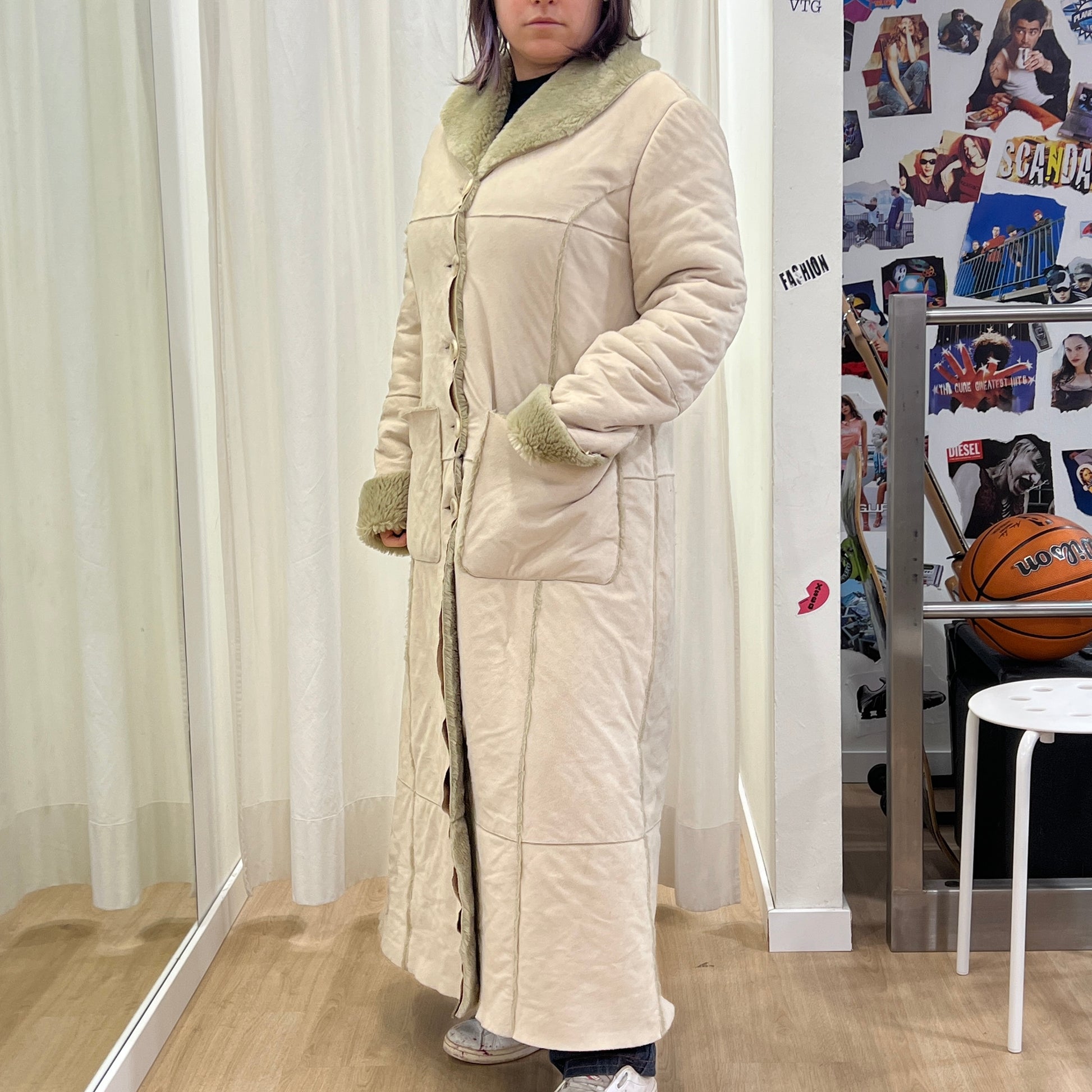 type 00s light beige vegan sheepskin afghan coat