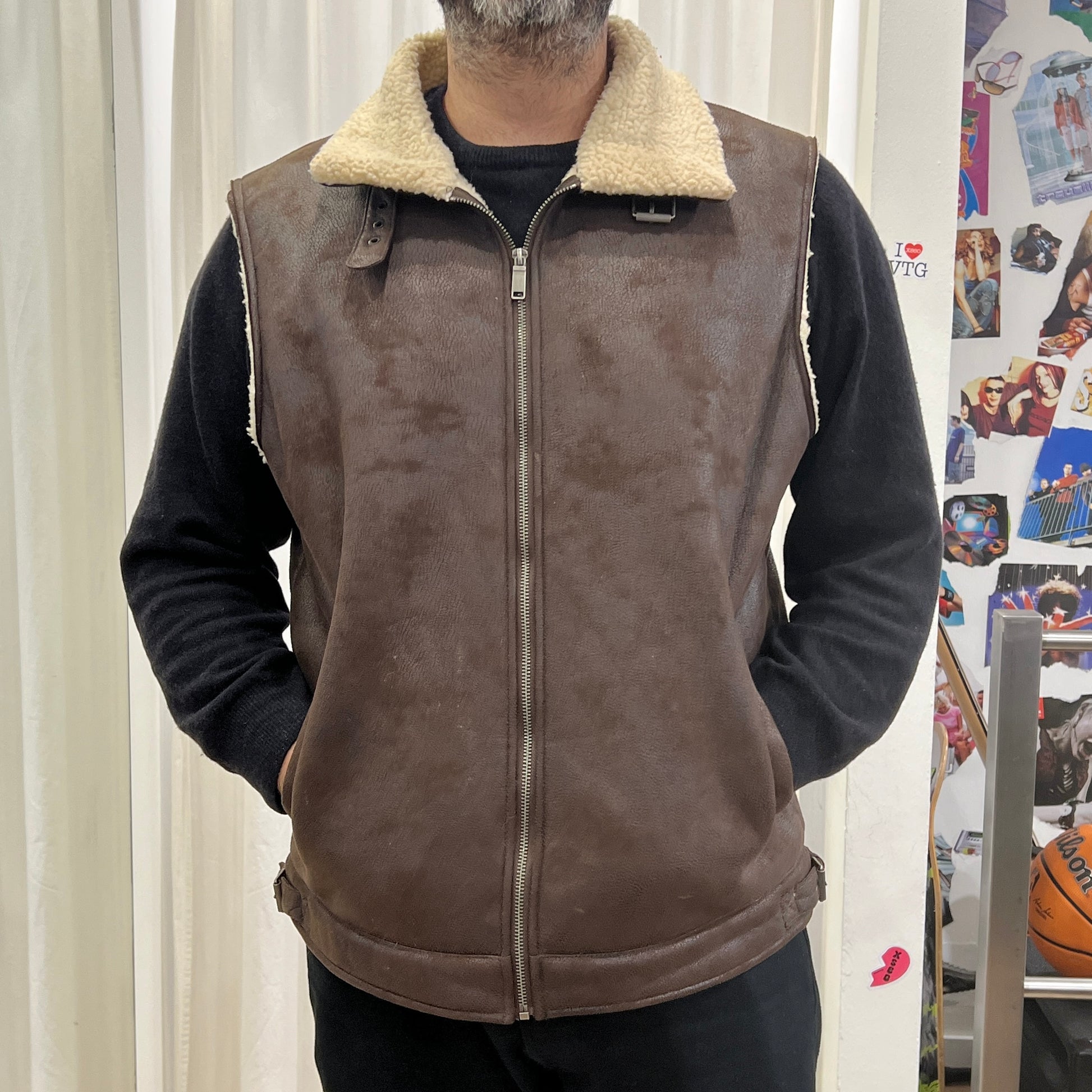 bata 00s brown vegan sheepskin zip up vest